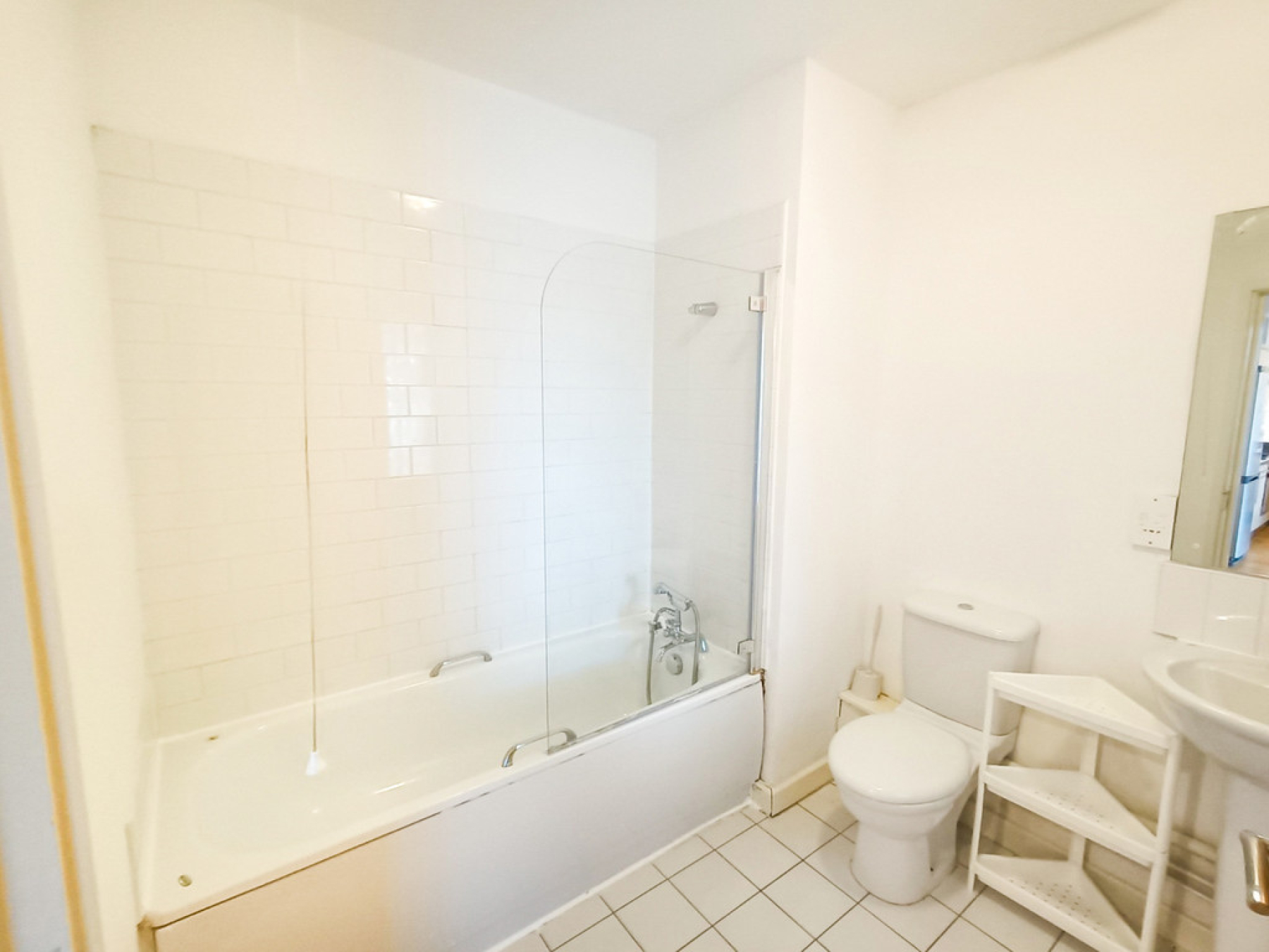 Bathroom7' 8" x 7' 3" (2.34m x 2.21m) Comprising of a white three-piece suite with bath and overhead shower, low level flush W/C, pedestal wash handbasin and heated towel rail.