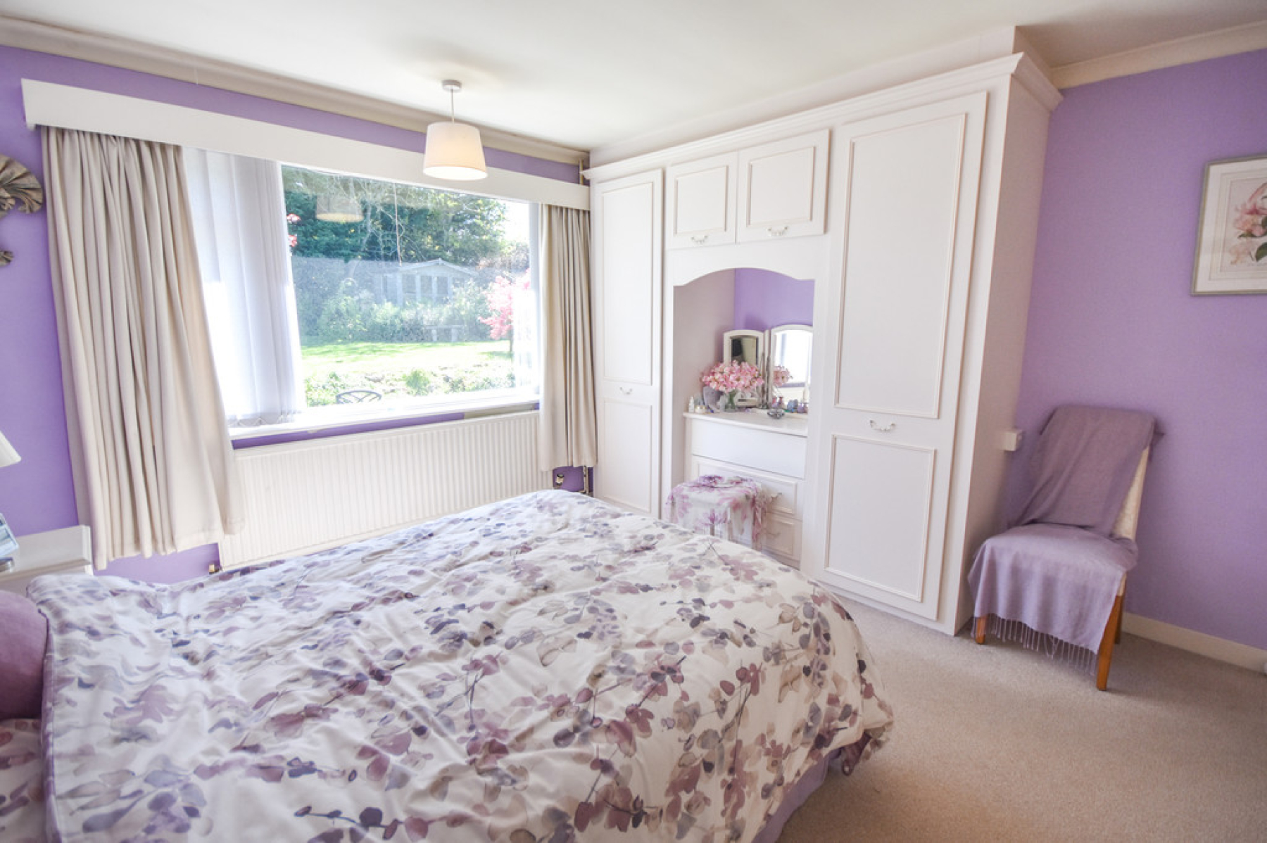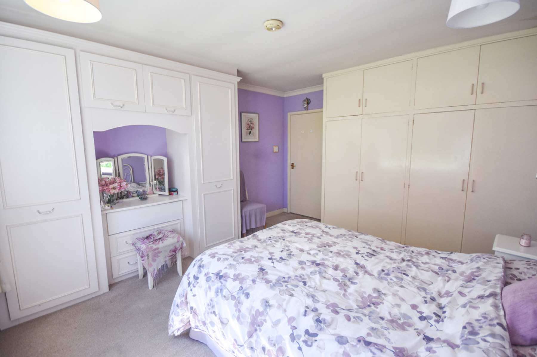 Bedroom One 13' 8" x 11' 10" (4.17m x 3.63m) With double glazed window to the rear elevation, fitted wardrobes and dressing table, built cupboards, radiator and ceiling light point.