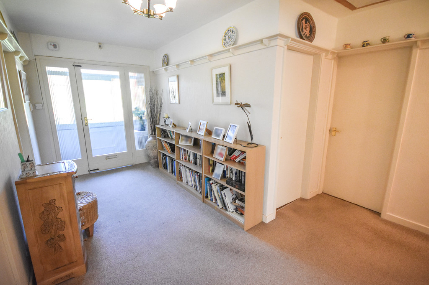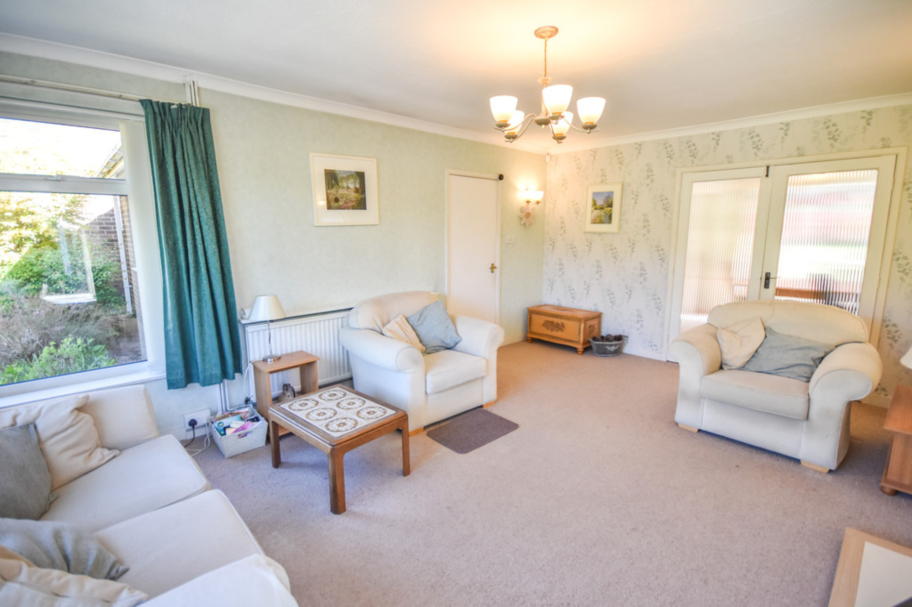 Hallway Entrance door with matching side panel windows to porch, radiator, walk in cloakroom with useful storage space, loft access with pull down ladder, built storage cupboards and doors leading to both double bedrooms, living room, shower room and the kitchen.