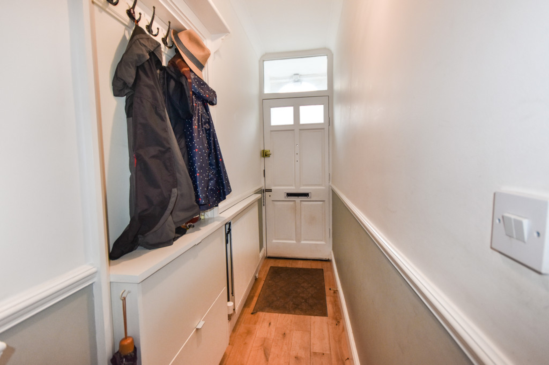 Entrance Hallway Entry through the UPVC front entrance door with stairs rising to the first floor, radiator, ceiling light point, coving to the ceiling and doors leading through to the living room and the dining room.