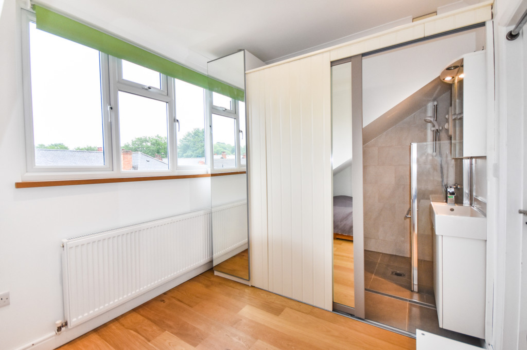 Study/Dressing Area 9' 6" x 6' 9" (2.90m x 2.07m) With UPVC double glazed window to the rear elevation, oak wood flooring, radiator, ceiling spot lights, built in single wardrobe, eaves storage and door leading through to the En-Suite.