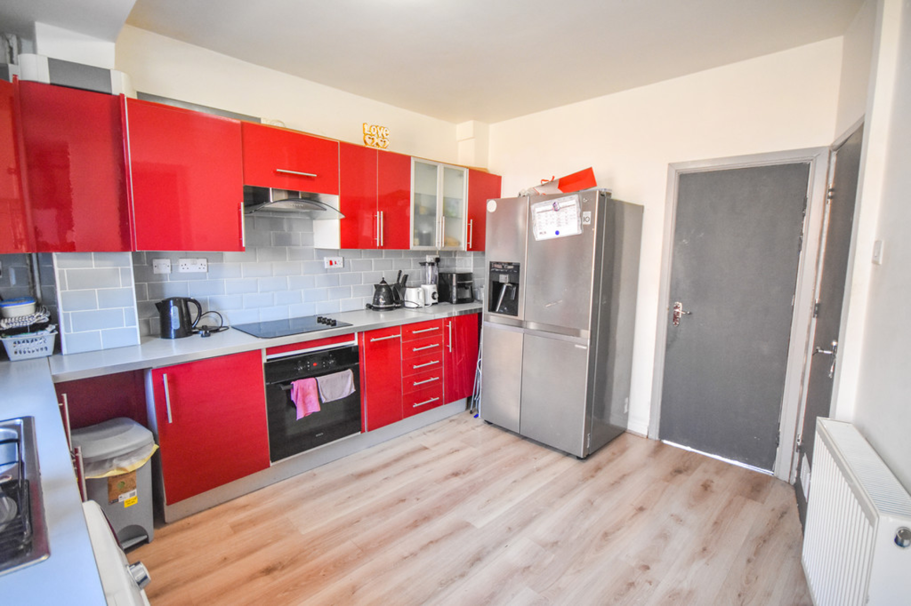 Kitchen/Diner 14' 7" x 11' 1" (4.47m x 3.40m) With UPVC double glazed window to the rear elevation, wood effect flooring, range of wall and base units with sharp edge work surfaces, stainless steel sink and drainer with mixer tap over, plumbing for washing machine, integrated electric oven with four ring electric hob and extractor fan over, tiled splash backs, space for fridge/freezer, ceiling light point, Main eco compact combination boiler, door leading to stairs rising to the first floor and door leading out to the rear garden.