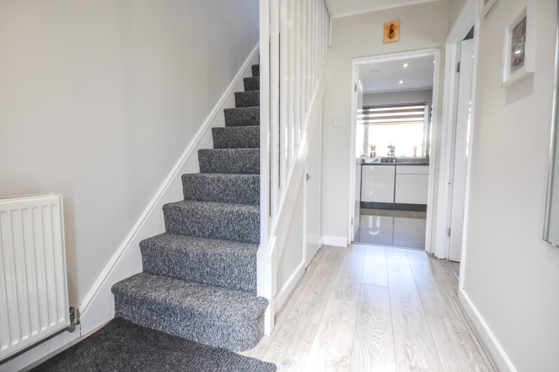 Entrance Hallway Entry through the front entrance door with stairs rising to the first floor, under stairs storage, radiator, ceiling spotlights and doors leading through to the Living Room and Kitchen.