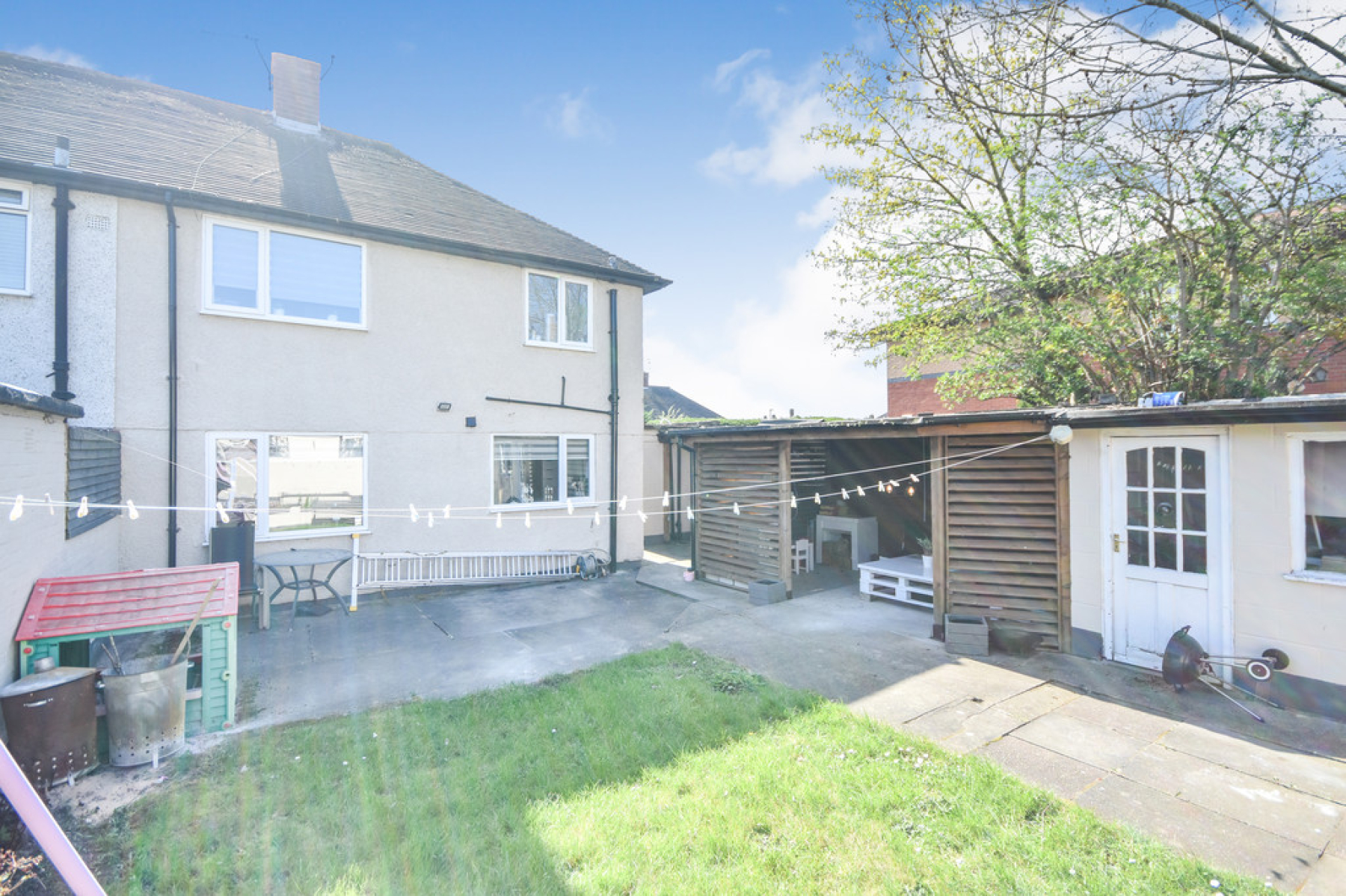 To the ground floor is an entrance hall, a good sized dining kitchen spanning the width of the property and living room. The first floor offers three bedrooms serviced by a three-piece bathroom suite. Outside to the front is a driveway providing off road parking with fenced borders. To the rear is a low maintenance garden mainly laid to lawn with covered seating area and two outbuildings for storage and possible annex conversion.