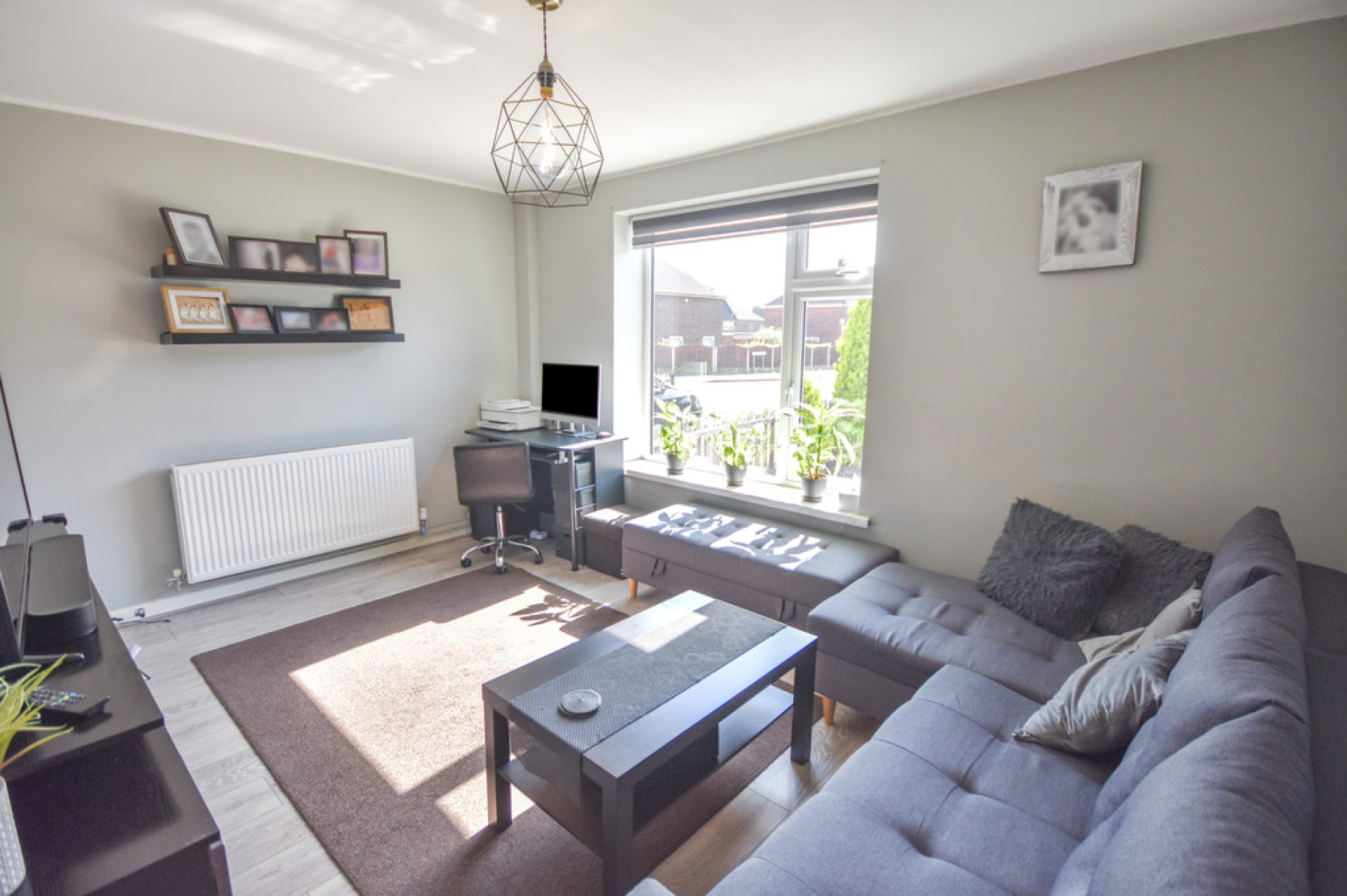 Living Room 14' 6" x 10' 8" (4.43m x 3.27m) With UPVC double glazed window to the front elevation, double radiator, LVT flooring, ceiling light point and door leading through to the dining kitchen.