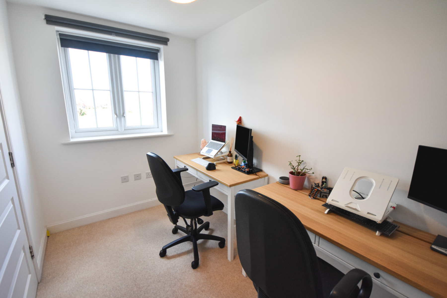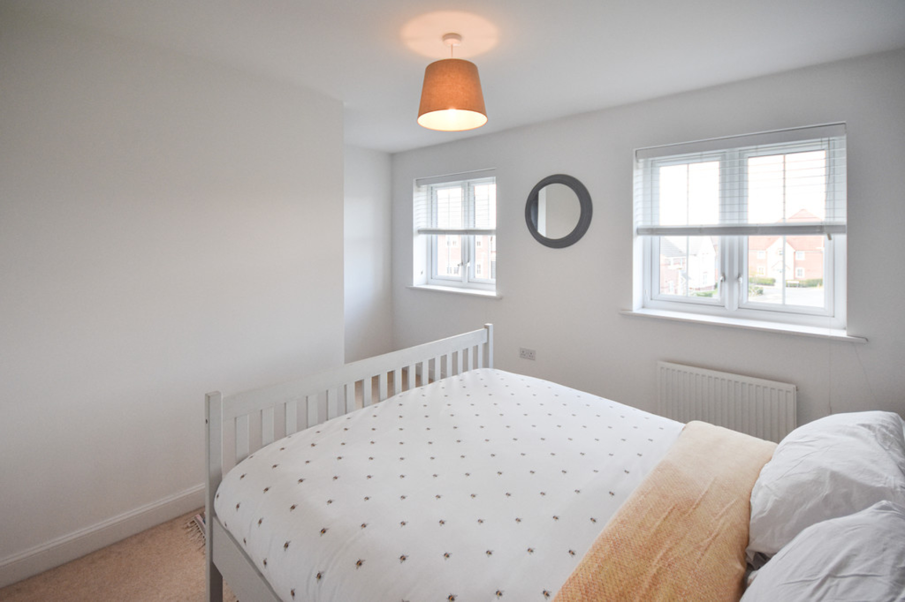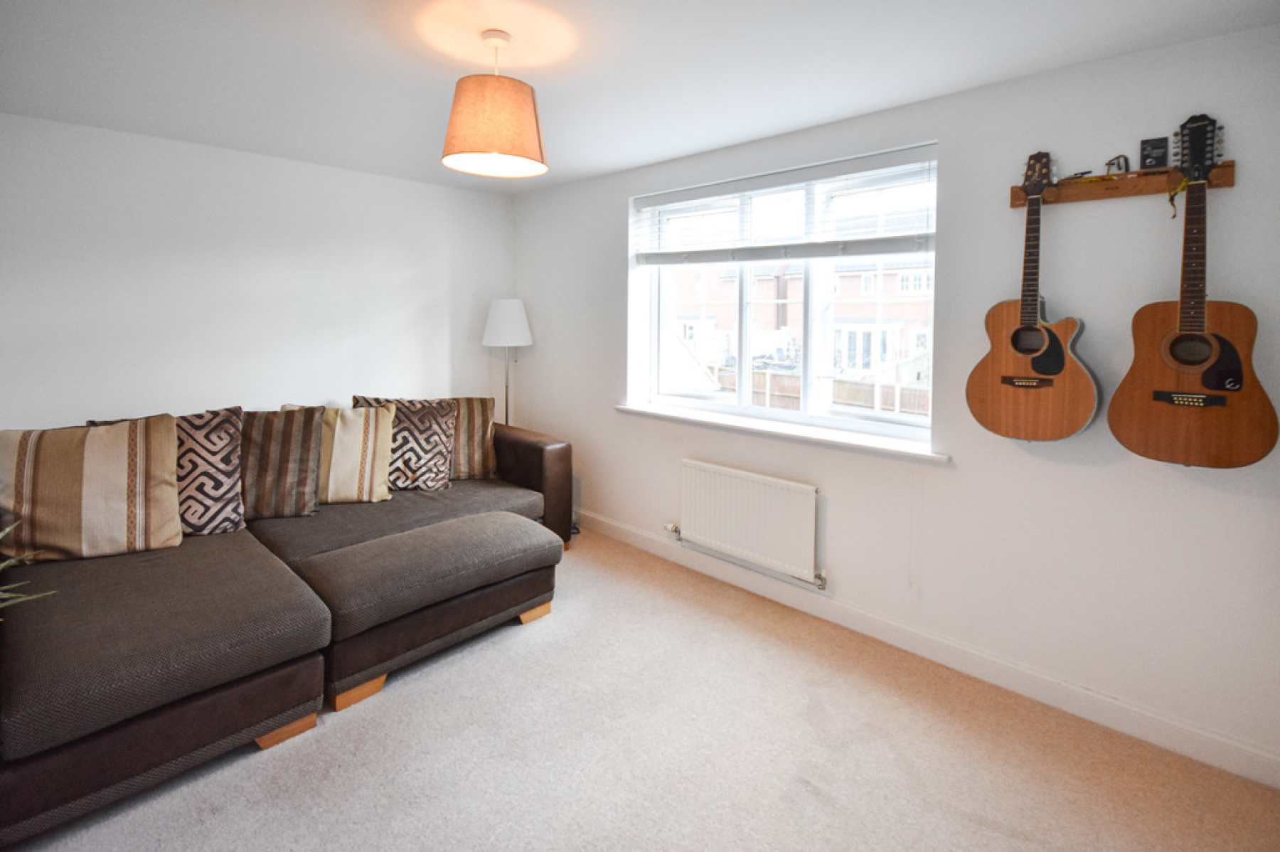 Bedroom Two 12' 5" x 9' 9" (3.79m x 2.99m) With UPVC double glazed window to the front elevation, over stairs storage, radiator, ceiling light point and carpeted flooring.