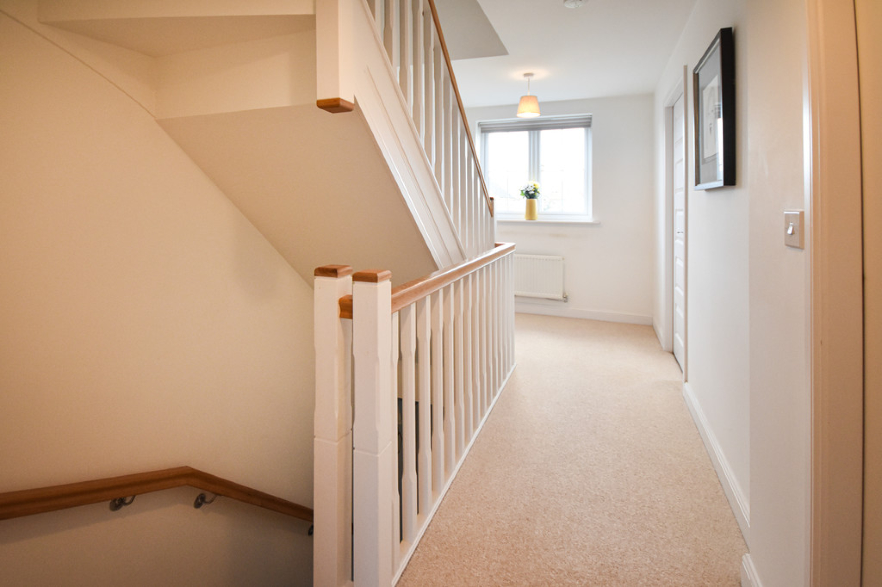 First Floor Landing With built in storage cupboard housing the hot water tank, carpeted flooring, ceiling light point and doors leading to bedrooms three and four and the bathroom.