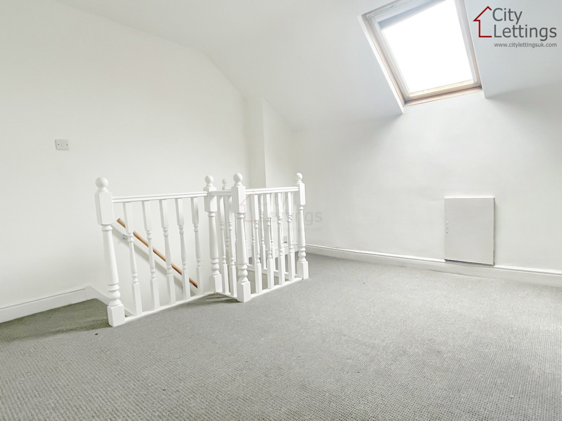 Bedroom Three 11' 11" x 11' 2" (3.65m x 3.42m) Velux window to the rear elevation, carpeted flooring, eaves storage, electric storage heater and ceiling light point.