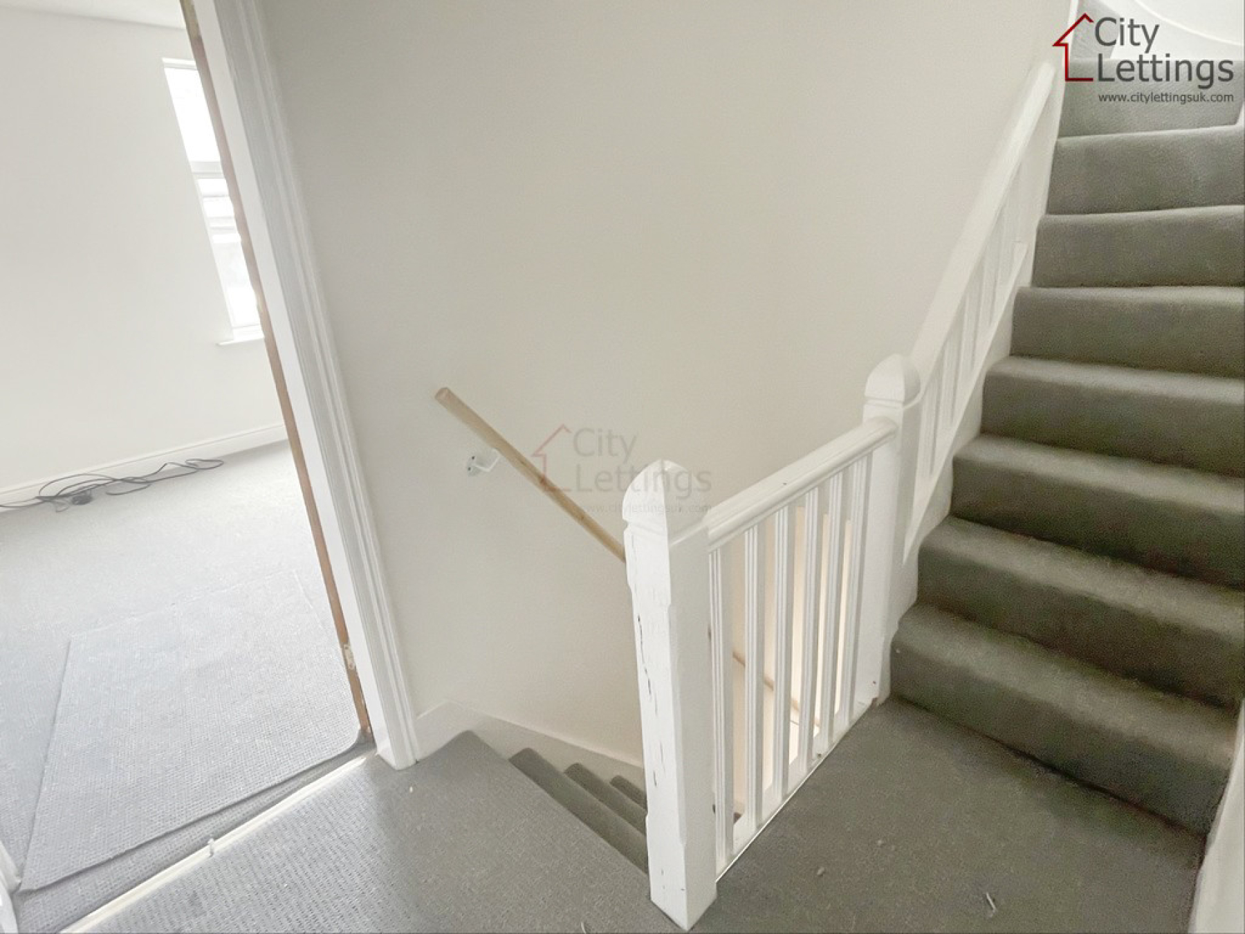 First Floor Landing With stairs rising to the second floor, radiator, two ceiling light points and doors leading to two bedrooms and the bathroom.